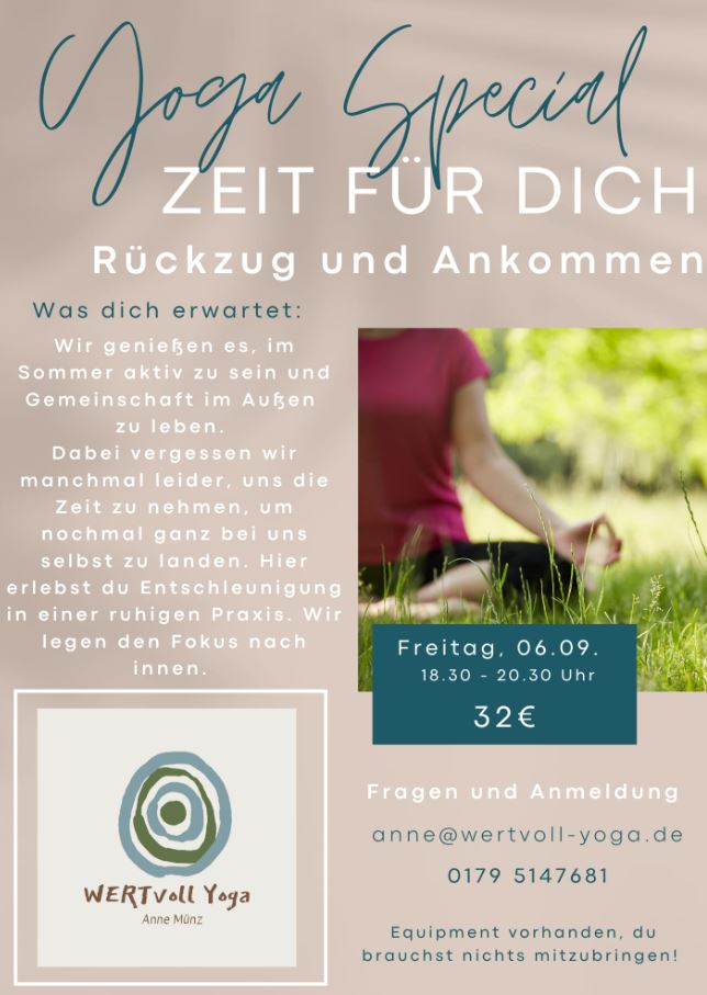Mein Name ist Anne - ich bin Yogalehrerin ( Vinyasa 200h, +300h in Ausbildung) und zertifizierte Yoga und Krebs Trainerin und führe neben meinem Hauptjob mein eigenes Yogastudio namens WERTvoll Yoga in der schönen Vulkaneifel.